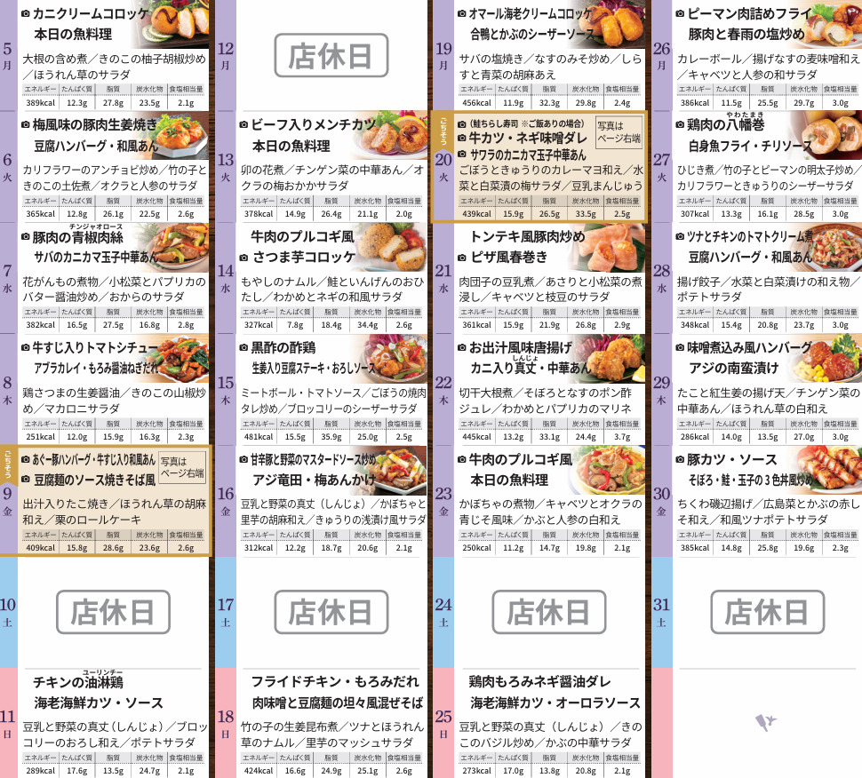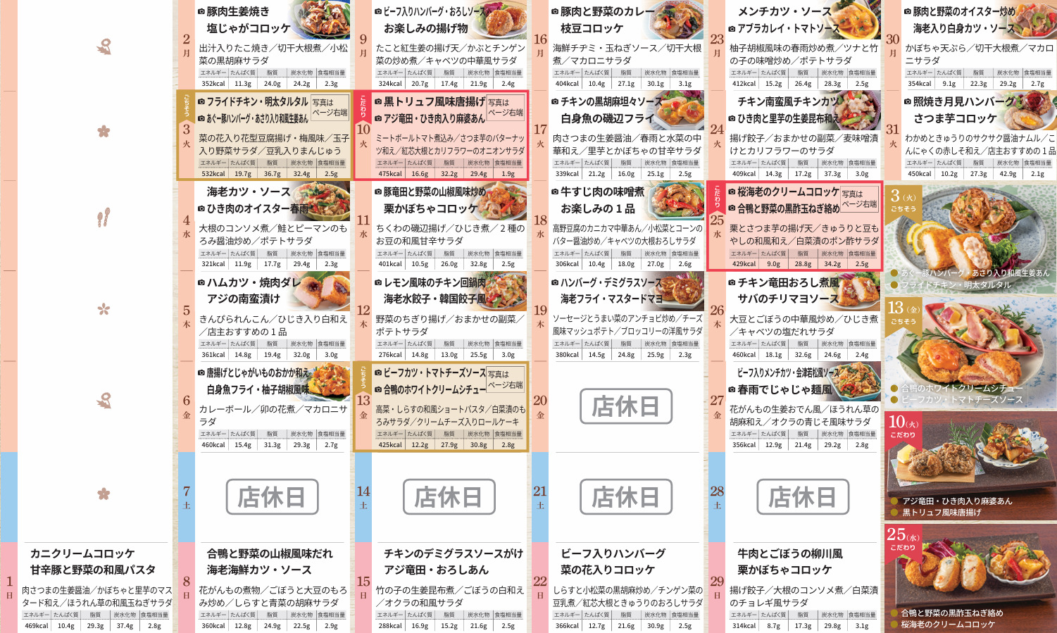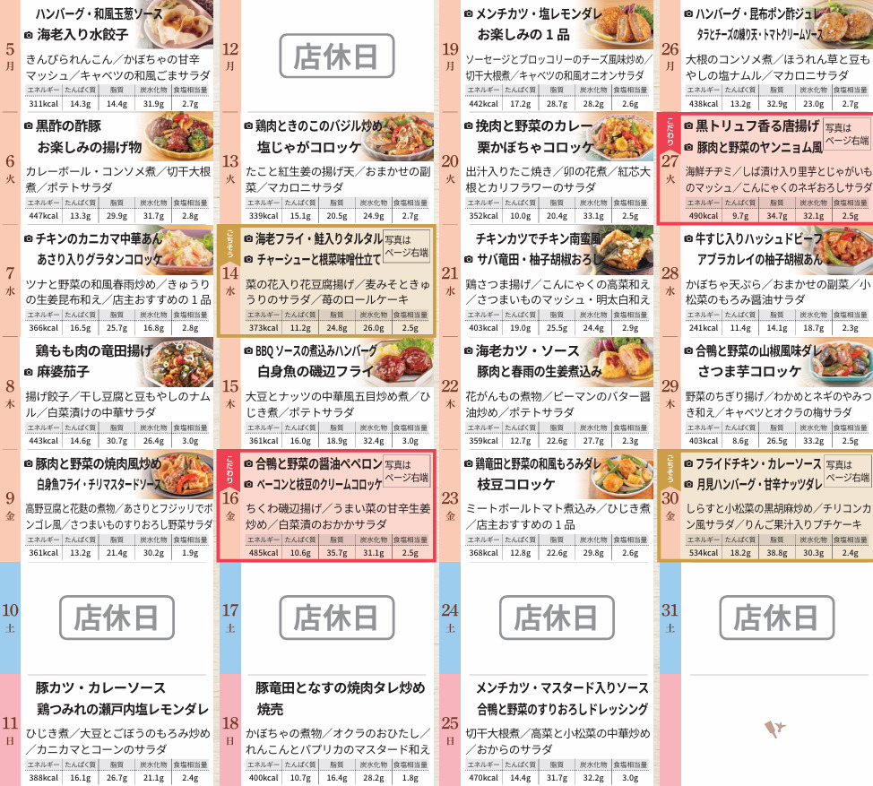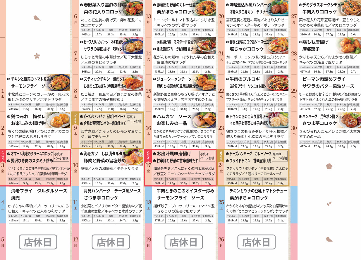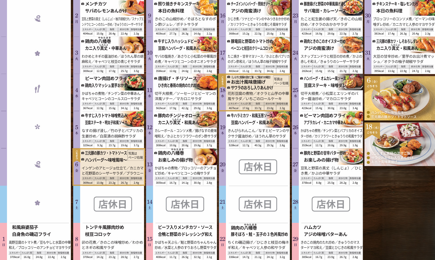 ご当地メニューや季節に合わせたイベントメニューなど、毎日の楽しみをお届けします♪